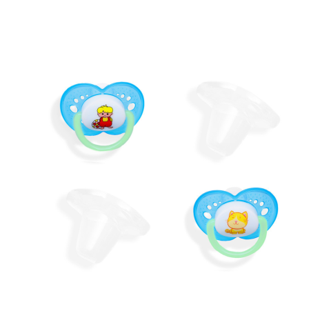Kiváló minőségű 2db-os ortodontikus, BPA mentes, anatómiai formájú, szilikon játszócumi, védő kupakkal 0-6 hónapos korig, sötétben világító karikával. Egyedi kedves figurákkal, három különböző színekben kapható. Két különböző méretben elérhető: 1-es mére