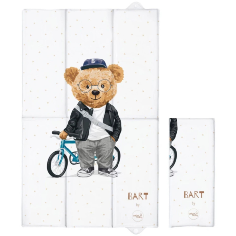 RAKTÁRRÓL AZONNAL! Utazó pelenkázó lap 50x80 cm - Biciklis maci Stabil, sík felületre helyezve alkalmazható. Vízálló műanyag, könnyen tisztítható. Maximum 15 kg-ig használható.