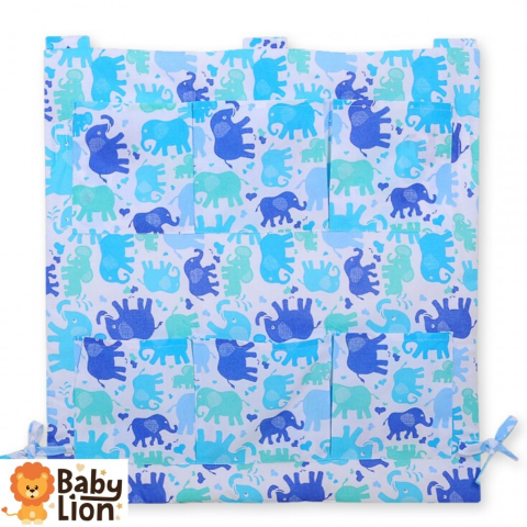 1 kép BabyLion BabyLion Prémium Zsebes tároló kiságyra - Kék elefántok