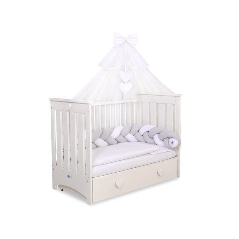 Gyönyörű Baldachin Szivecskékkel. Védelem a közvetlen fény és a huzat ellen. Kiváló minőség és megbízható kivitelezés.- baldachin mérete: 470x160cm(egyéb anyag 100% pamut, 100% poliészter töltelékkel).60x120cm vagy 70x140cm kiságyba is megfelelő** A b