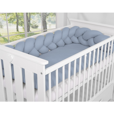 Gyönyörű, nagyon puha fonott gyermekágyba való rácsvédő, 100% pamutból. Rúdhoz rögzíthető. A rácsvédő megvédi a baba kezét és lábát a rácsok közötti elakadástól , valamint a csecsemő fejét és testét a kiságy falához való ütközés ellen. A mellékelt pamut