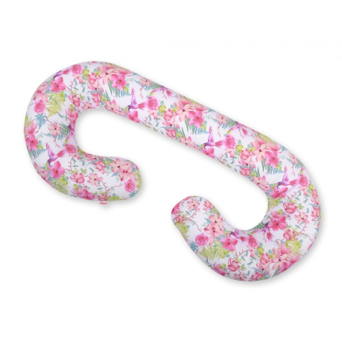 BabyLion Prémium XXL Ölelő párna - Rózsaszín virágok és kolibrik kismama párna 1 kép