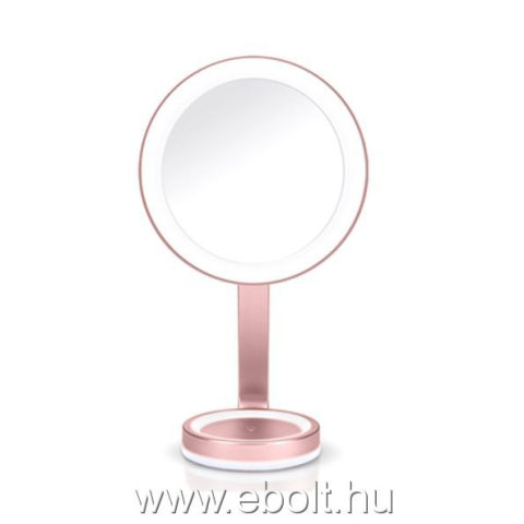 Szatén, pink, kozmetikai tükör LED-es világítással. Eltávolítható 10-szeres nagyítással rendelkező, mágneses kiegészítő tükör, mely a nagy tükörre vagy a talpra helyezhető. Tulajdonságok és Tartozékok: Normál tükör és mágnesesen ráhelyezhető 10x -
