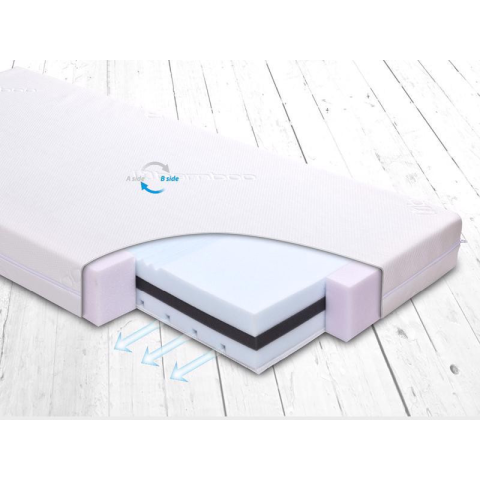 Kétoldalas matrac – FRESH DeLux – biztonsági tanúsítványa legmagasabb osztályú gyerekek számára.Tulajdonságok:**Töltet: Négyrétegű matrac szerkezet.Erősítő réteg meghosszabbítja a matrac élettartamát.A oldal: Innovatív légbetét, 3D szálakból készültaz áll