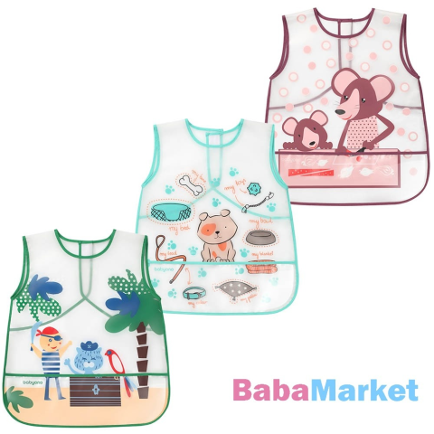 BabyOno nagyméretű előke - fólia 36hó 840 Baba előke fólia, amely hatékonyan megvédi a babaruhát etetés közben az ételfoltoktól. Könnyű, puha és könnyen tisztítható műanyagból készül. A kötény kényelmes tépőzáras zárral és praktikus zsebbel is rendelk