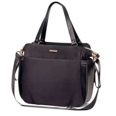 Pelenkázó táska - belső tagolás és kulcstartó zsinór, záródás módja cipzárral, rögzítés a babakocsira karabinerekkel, vállon, kézben és a babakocsira rögzítve hordható, állítható hevederek, laptopzseb, kulacstartó zseb, mobiltelefon zseb, belső zseb és hőszigetelt zseb, összesen 11 zseb, anyaga nejlon, fekete kivitel, méretei 36 × 33 × 13 cm (ma × szé × h), pelenkázó alátét a csomagban Ez a kicsi, mégis tágas, babakocsira rögzíthető táska kiváló te