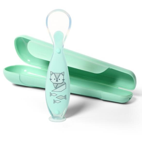 Babyono Szilikon gyerek kanál tokban, menta (5901435409848)