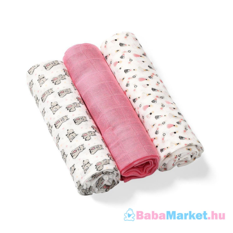1 kép Babyono textilpelenka színes 3db bambusz 397/01 rózsaszín