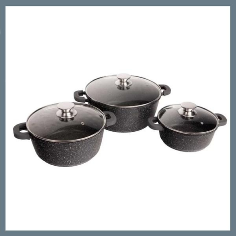 BachMayer 3 részes lábas szett fekete mintás márvány bevonattal BM-7874 edény termékleírás