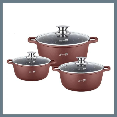 Teljes BachMayer 3 részes márvány bevonatú lábas készlet burgundy BM-7863 termékleírás
