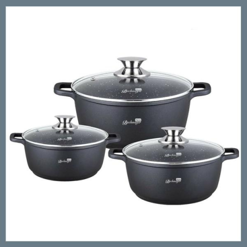 Teljes BachMayer 3 részes márvány bevonatú lábas készlet szürke BM-7872 termékleírás