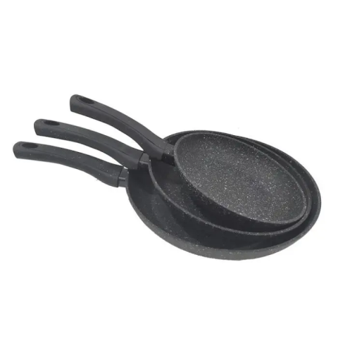 A márvány bevonatos serpenyő szett praktikus és tartós megoldás minden konyhában. A készlet három különböző méretű serpenyőt tartalmaz, amelyek alkalmasak tojás, hús, zöldségek vagy palacsinta készítésére.
