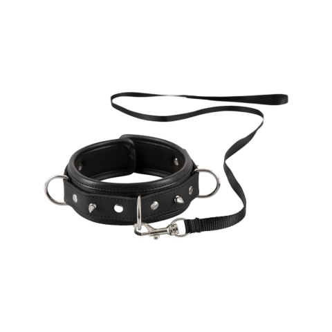 Bad Kitty - tüskés, szegecses nyakörv pórázzal (fekete)