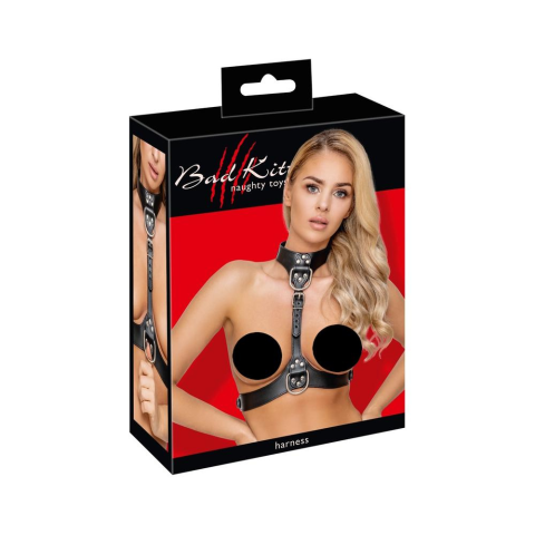 1 kép Bad Kitty - bőrhatású testhám D-gyűrűkkel (fekete)