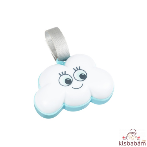 éjjeli fény Világító és zenélő felhő formájú éjjeli fény. 15 előre felvett altatódallal, ami folyamatosan cserélődik és amutomatikusan lekapcsol 30 perc után. 6 féle színben világít, ami 30 perc után automatikus kialszik. A tépőzár segítségével könn
