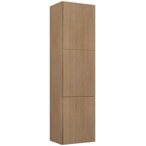 Magasszekrény 170x45x38 cm, tölgy szín, mélyített fogantyúval. High cupboard include 3 glass shelves and the product contains bowl set.