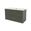 Fürdőszobabútor Tiffany 100cm matt sötétzöld, alsószekrény kerámia mosdóval, matt sötétzöld színben, 2 csillapított záródású fiók.