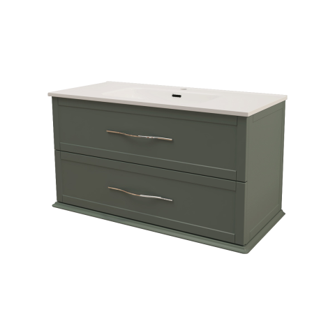 Fürdőszobabútor Tiffany 100cm matt sötétzöld, alsószekrény kerámia mosdóval, matt sötétzöld színben, 2 csillapított záródású fiók.