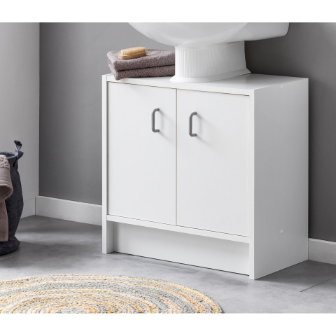 A Badmobil mosdó alatti fürdőszobai szekrény klasszikus kialakítás jellemzi. Mindössze 28 cm mélységű, ezenkívül különösen helytakarékos és ideális kis fürdőszobákhoz és vendég WC-khez. Időtlen fehér színével és formájával bármely stílusú fürdőszobába illik és beépíthető. A fehér lekerekített fogantyúk harmonikusan egészítik ki az egyszerű bútort. A mérete: 54 cm x 54 cm x 28 cm. Tárolóhely a fürdőszobai kiegészítőkhöz, még kis fürdőszob