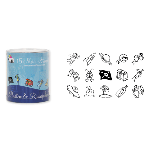 1 kép Baier & Schneider GmbH & Co.KG Heyda nyomda szett (15db+1db tintapárna) kalózos, űrhajós