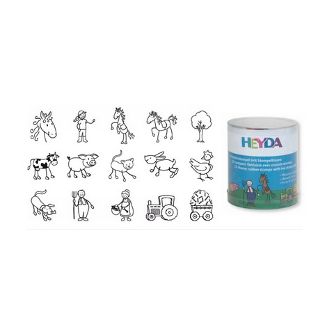 1 kép Baier & Schneider GmbH & Co.KG Heyda nyomda szett (15db+1db tintapárna) lovak, farm