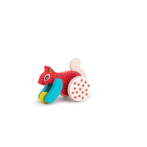 Bajo Fából készült mókus kerekeken piros
