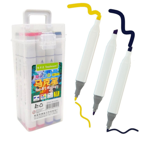 Baking & Pet Kft Kétfejű akril festék filctoll készlet hordozható tárolóban -12db filctoll, marker termékleírás