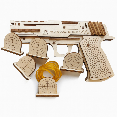 Tulajdonságai: Anyaga: Fa Termék típusa: Kirakó játék Ajánlott: Tinédzsereknek vagy felnőtteknek Ez a mechanikus fa puzzle pisztoly egy izgalmas összeszerelhető játék, amely ötvözi a kreatív építést és a célba lövés élményét. A precízen lézervágott fa