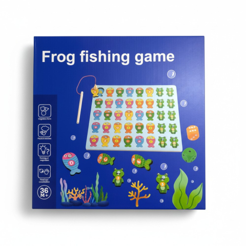 Tulajdonságai: Mérete: 30x30cm Anyaga: Fa Termék típusa: Gyerek fejlesztő játék Ez a fa békás horgászós fejlesztőjáték vidám és tanulságos elfoglaltságot kínál a kisgyermekek számára. A mágneses horgászbot segítségével a gyerekek békákat és halacskák