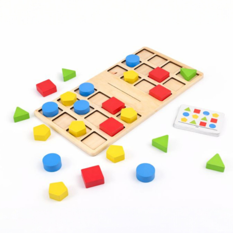 Tulajdonságai: Mérete: 29x15cm Anyaga: Fa Termék típusa: Gyerek fejlesztő játék Ajánlott életkor: 3+ Ez a fa alapú logikai játék kiválóan fejleszti a gyermekek gondolkodását, megfigyelőképességét és problémamegoldó készségét. A játék célja, hogy a mint