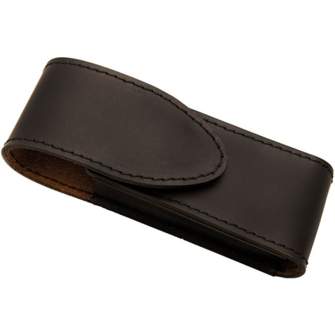 Fekete övbőr tok a késekhez, bicskákhoz Valódi bőr, fekete színű, fekete varrással, mágneses záródással. Mérete: 13 x 4,5 x 3 cm
