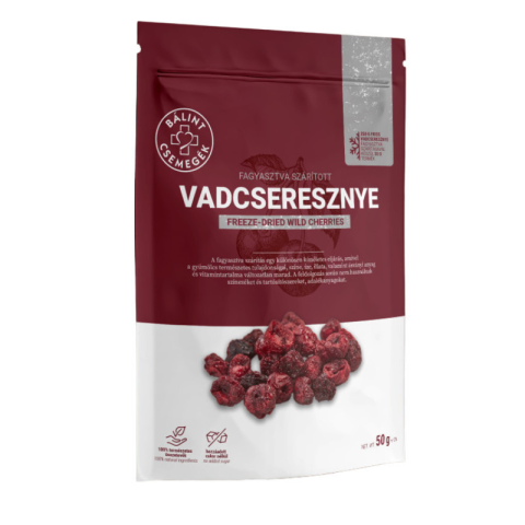 Bálint csemegék fagyasztva szárított vadcseresznye 50 g A fagyasztva szárítás egy különösen kíméletes eljárás, amivel a gyümölcs természetes tulajdonságai, színe, íze, illata, valamint ásványi anyag és vitamintartalma változatlan marad. A feldolgozás s