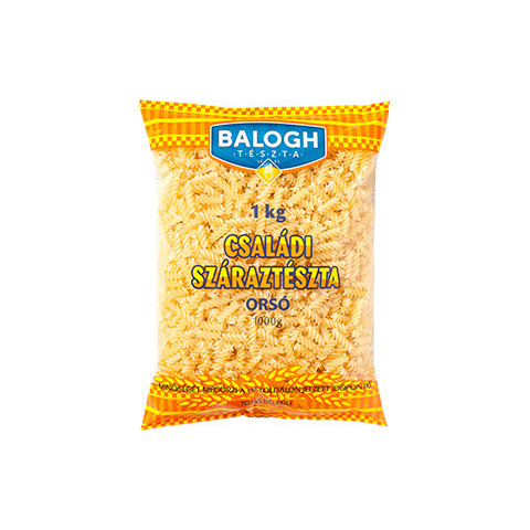 BALOGH tészta 1kg Orsó Ismerd meg a BALOGH márka egyik klasszikusát: a 1 kg-os Orsó tészta – orsó formájú, minden napos étkezéseket is különlegessé varázsoló alapanyag. Kiváló választás gyors ebédekhez, ünnepi vacsorákhoz vagy egyszerű gyerekmentes h