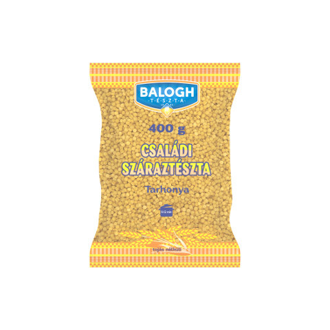 BALOGH tészta 400g Gépi Tarhonya Leírás Ez a BALOGH Gépi Tarhonya 400 g-os kiszerelésű termék, amelyet korszerű gépi technológiával gyártanak. Az egyenletes szemek biztosítják a gyors és egyenletes főzést, így a hagyományos magyar fogások köretéhez i