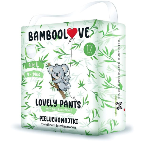 Bugyipelenka - eldobható, mérete L, 9-14 kg súlyú gyermekek számára, hipoallergén, anyaga bambusz viszkóz, felhúzható, 17 db a csomagban Olyan biztonságos nadrágpelenkát keresel, amely ráadásul kényelmes is? Akkor a neves Bamboolove bugyipelenka kétségkívül tetszeni fog. Nem tartalmaz egyetlen allergént sem, ezért kitűnő választás all