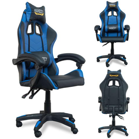 1 kép BANDIT Blue Thunder Gamer szék derék- és fejpárnával - fekete-kék