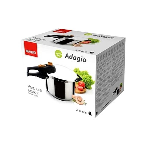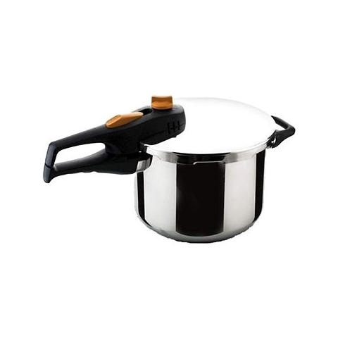 Kukta - űrtartalma 6 l, használható gáz, elektromos, indukciós és üvegkerámia főzőlapon, szendvics fenekű, edény anyaga rozsdamentes acél, rozsdamentes acél külső felület, rozsdamentes acél belső felület, műanyag fogantyú, mosogatógépben mosható, fedő a csomagban, átmérője 22 cm A BANQUET ADAGIO A03105 6 literes, rozsdamentes acélból készült kuktája - narancssárga gombbal és bajonettzárral - tökéletes egy igazi gulyás, húsleves vagy más pörkölt alapú