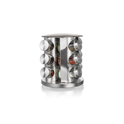 A készlet tartalmaz egy prémium minőségű, forgatható, rozsdamentes acél fűszertartó állványt, 12 db, szórófejjel ellátott üveg fűszertartót, amely rendezett, és könnyen hozzáférhető tárolást biztosít fűszereinek. Ne hagyja ki az AKCENT 12 részes szettet,