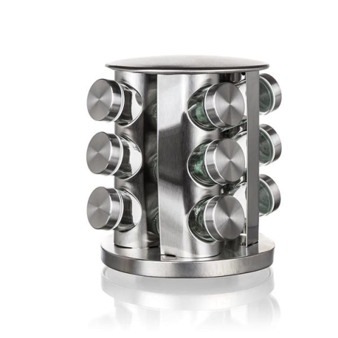 Fűszertartó szett - 12 db a készletben, forgatható és fedeles, 85 ml űrtartalmú üveg tárolóedény, tárolóedény magassága 9,5 cm, fűszertartók és állvány a csomagban, polc/állvány magassága 23 cm A kitűnő BANQUET AKCENT Fűszertartó szett állványban, 85 ml, 12 db termék lényeges paraméterei A remek Banquet fűszertartó szett nemcsak a fűszerek szétválogatására és megőrzésére alkalmas, hanem deko