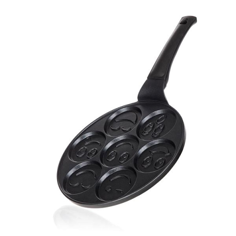 Palacsintasütő - kerek, használható gáz, elektromos, indukciós és üvegkerámia főzőlapon, tapadásmentes felület, alumínium külső felület, műanyag, serpenyő felső szélének átmérője 26 cm, fekete kivitel A BANQUET ALIVIA serpenyővel mesés palacsintákat készíthetsz. Használhatod tükörtojáshoz, burgonyás palacsintákhoz vagy minipizzákhoz is. Egyidejűleg 7 db 8 cm átmérőjű ételt készíthetsz, amelyekbe eg