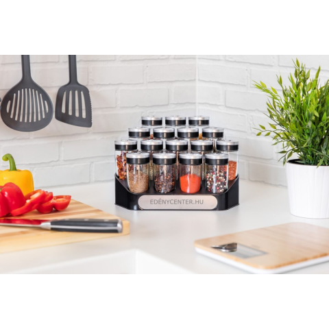A készlet tartalmaz egy prémium minőségű ABS műanyag állványt, 16 db három különböző lyukmérettel ellátott, 95 ml-es üveg fűszertartót, amely rendezett, és könnyen hozzáférhető tárolást biztosít fűszereinek. Ne hagyja ki az ALTIMA 17 részes szettet, amely nemcsak praktikus és sokoldalú,