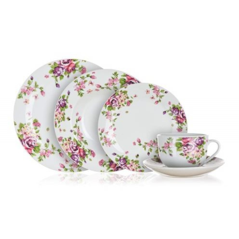 Étkészlet - 30 darabos készlet, a készlet tartalma csészealj, 6 lapos tányér, 6 mély tányér, 6 desszert tányér, 6 csésze, kerek alakú, anyaga porcelán, mintás, mosogatógépbe és mikrohullámú sütőbe helyezhető A harminc darabos BANQUET BEAUTY étkészlet tökéletes a teljes ebéd, vagy vacsora felszolgálására. A porcelán készlet tartalma 6 darab mély tányér, 6 darab lapos tányér, 6 darab desszertes tá