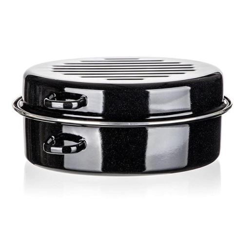 Sütőedény - 10,5 l-es űrtartalom, anyaga: zománcozott acél, fedél, indukciós, gáz, kerámia és elektromos tűzhelyhez, 235 mm széles, 380 mm hosszú, 170 mm magas, A sütés a hobbid és szeretnél egy új sütőedényt? A nagyszerű BANQUET CULINARIA Black ovális zománcozott serpenyő 38 cm 2 db max. kapacitása 10,5 l, így megfelel minden elvárásodnak. Kiváló minőségű zo