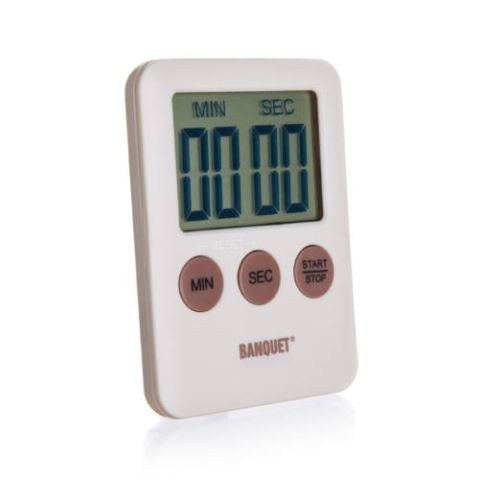 Minden konyha elengedhetetlen kelléke egy jó időzítő! Ezzel a Banquet Culinaria digitális konyhai időzítővel nem kell többé az órádat nézegetned, hogy mikor telik le például a sütési idő. Használata rendkívül egyszerű a rajta levő három gombnak köszönhetően: A legfelső MIN gombbal tudod beállítani a percet, a középső SEC gombbal a másodpercet, az alsó START/STOP gombbal pedig el tudod indítani, illetve leállítani az időzítőt. Elem nélkül