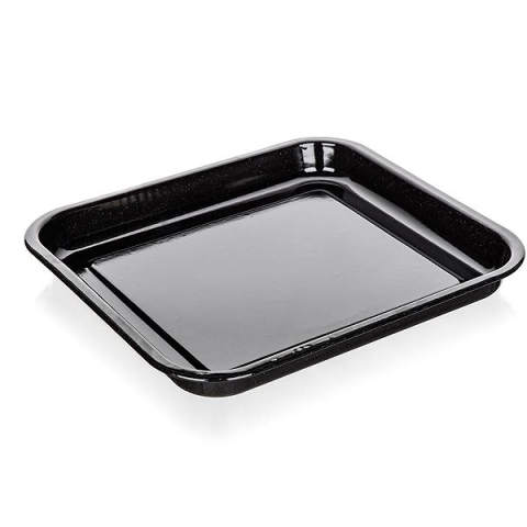 Tepsi - mély, anyaga zománcozott acél, zománcozott felület, fekete kivitel, méretek 40×370×410 mm (M×Sz×H) A minőségi Banquet tepsi nem hiányozhat egyetlen konyhából sem. A magasabb peremmel rendelkező, sütőbe való tepsi lehetővé teszi a különféle sós és édes ételek sütését, hiszen legyen bármi is az ebéd