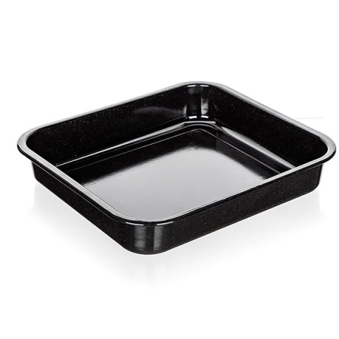 Tepsi - mély, anyaga zománcozott acél, zománcozott felület, fekete kivitel, méretek 70×370×410 mm (M×Sz×H) A nagyszerű Banquet tepsi a konyhában sokféleképpen alkalmazható. A magasabb peremmel rendelkező, sütőbe való tepsi több centis peremmel rendelkezik a különféle ételek sütéséhez, hiszen akármi is legy