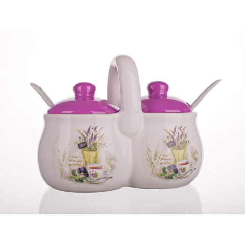 2 részes tégely kanalas LEVENDULA, az edény méretei: hossza 14,5 cm, szélessége 9 cm, magassága 11,5 cm, anyaga - kerámia, lila-fehér máz, levendula díszítéssel. Szín Fehér/lila Dekoráció Levendula Dekoráció Levendula Hosszúság (cm) 14.5 Anyag Kerámia Tér