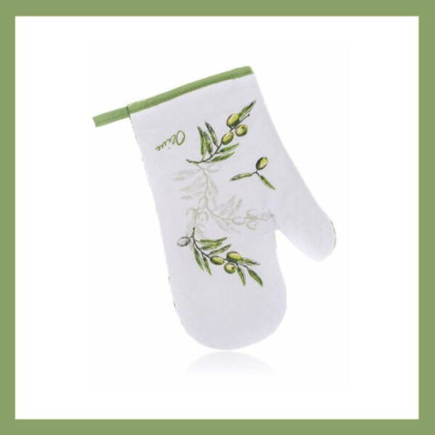 Pamut konyhai kesztyű OLIVES dekorációval. A kesztyű nélkülözhetetlen kellékké vált a sütésben és a főzésben. Ezért nem hiányozhatnak egyetlen konyhából sem. Mérete: 27 x 17 cm.