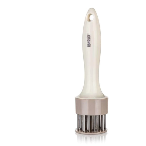 Húsklopfoló - az éles kések átvágják és megrövidítik a szálakat, így a hús puha, porhanyós és lédús marad, teljes hossz: 19 cm, markolat – műanyag; rozsdamentes acél tűk, mindenféle vörös húshoz alkalmas A Banquet CULINARIA húsklopfoló praktikus kiegészítője az otthoni és a professzionális konyháknak. Éles tűkkel rendelkezik, amelyek átvágják és lerövidítik a hús rostjait, így az porhanyós, pu
