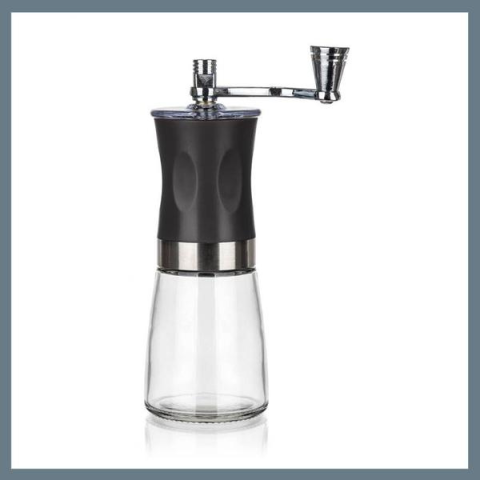 BANQUET Kávédaráló CULINARIA 19 cm, fekete 28660510Mechanikus kávédaráló fekete kivitelben, üvegtárolóval rendelkezik. Az őrlő belső mechanizmusa kerámiából készült, és lehetőséget biztosít az őrlés finomságának beállítására. A kávéőrölő segítségével mindig frissen őrölt kávét élvezhetsz. A készülék magassága 19 cm, az alapterület átmérője 6,5 cm.PARAMÉTEREK:Anyag: Rozsdamentes acél / kerámia / műanyag / üvegÁtmérő (cm): 6,5Bruttó súl